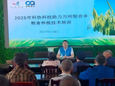 2025年8月31日,由重庆市科协主办,市科协科技助力乡村振兴学会联合体、万州区科协、万州区恒合土家族乡人民政府联合承办的“2025市科协科技助力万州恒合乡粮食种植技术培训”在万州区恒合土家族乡开讲。50余名农民群众齐聚一堂,认真聆听市农科院农技专家许明陆研究员带来的“农业技术盛宴”,为粮食的种植充能蓄力。